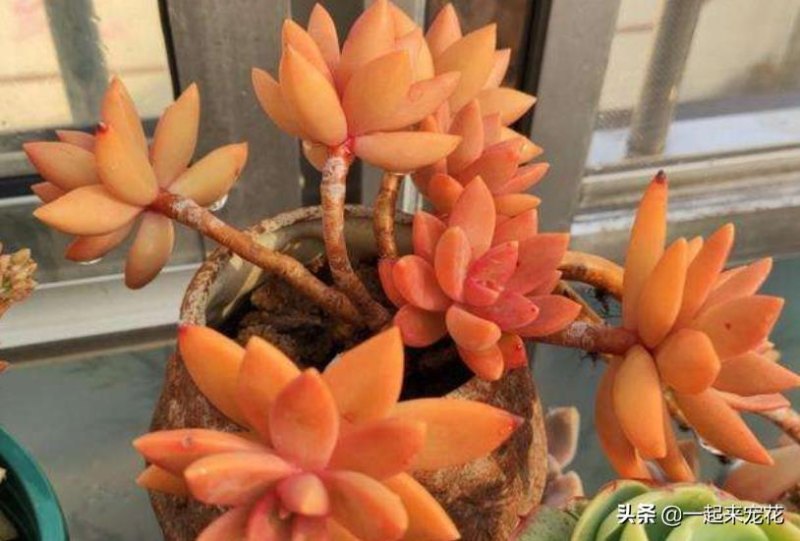 这种多肉的叶尖比较明显,叶片边缘也比较光滑,特别容易群生,而且茎秆粗壮,养成漂亮的小老桩,只要有充足的光照加上合适的温差,叶片就会变成橙黄色,还是很迷人的。