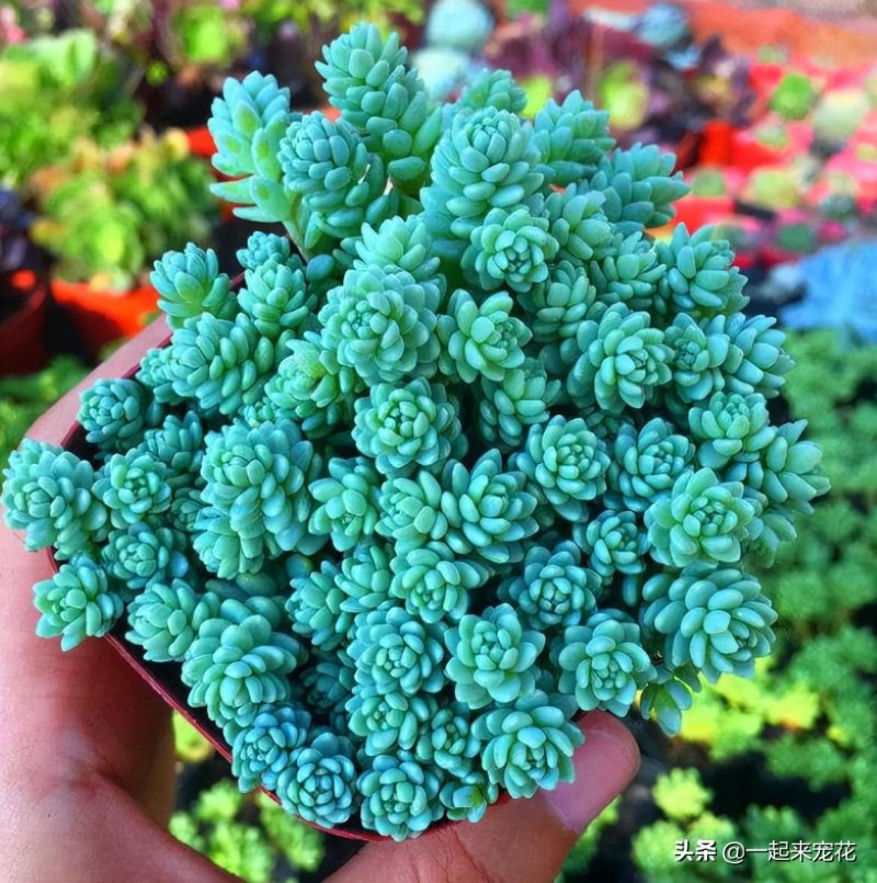这种多肉是比较特别的,因为叶片小巧可爱,看上去也是比较特别的,一串串的叶片非常容易爆盆,植株不是很大,容易群生,而且多晒晒太阳,还有一种淡淡的清香,非常的迷人。养护姬星美人一定要减少浇水,避免植株掉落。