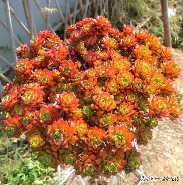 这种多肉的叶片是非常厚实的,而且光泽感十足,长出状态之后是标准的莲座状,平常叶片是绿色的,但只要多晒晒太阳,加大温差,叶片还会爆崽,养成漂亮的小老桩,叶片红艳,就像是火焰一般,真的是太好看了。
