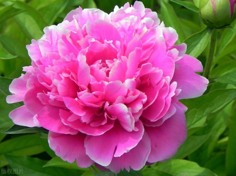 牡丹在每年的5月份开花,通常生长在花枝的顶部,直径大约为10-17厘米,颜色有玫瑰色、红紫色以及粉红色等,养护期间,要为牡丹花提供充足的光照,开花时保证土壤湿润,肥料则选用磷酸二氢钾,促进植株开花更加茂盛。