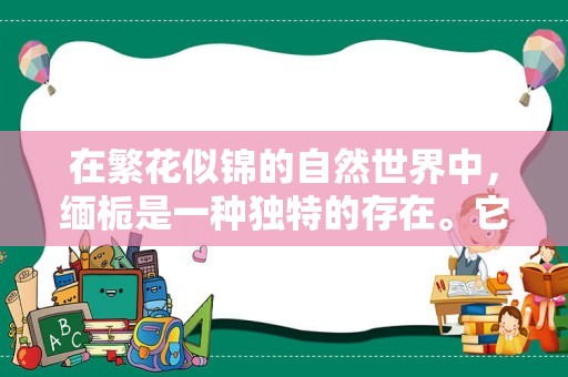 在繁花似锦的自然世界中,缅栀是一种独特的存在。它以其独特的形态和香气,在众多植物中独树一帜